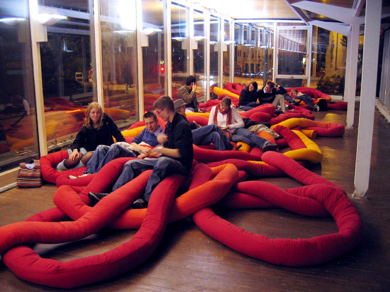 Lenka, Denise, Charlotte,... 2004, Trnava Dyed fabric, foam The work's title changes according to the regional patronymic calendar wherever it is exhibited.